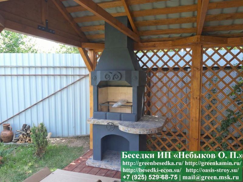 Угловой мангал-барбекю № 19 сделана из армированного огнеупорного бетона с добавлением керамзита;