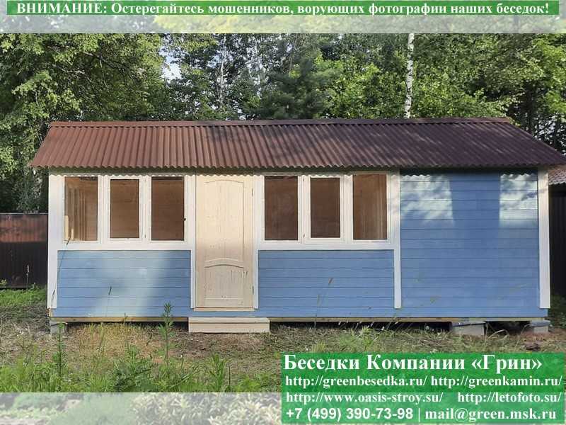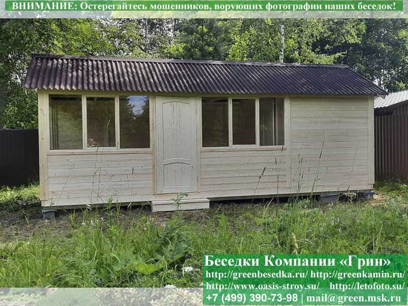 В стандартной поставке в виде кровли на крышу беседок, хозблоков 3х7 метров кладется ондулин (мягкий шифер). Вы можете дополнительно заменить ондулин на более надежную металлочерепицу. Цена: 15000 руб.