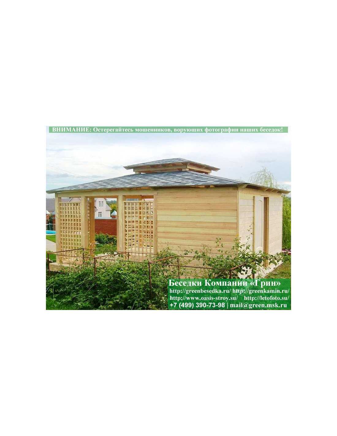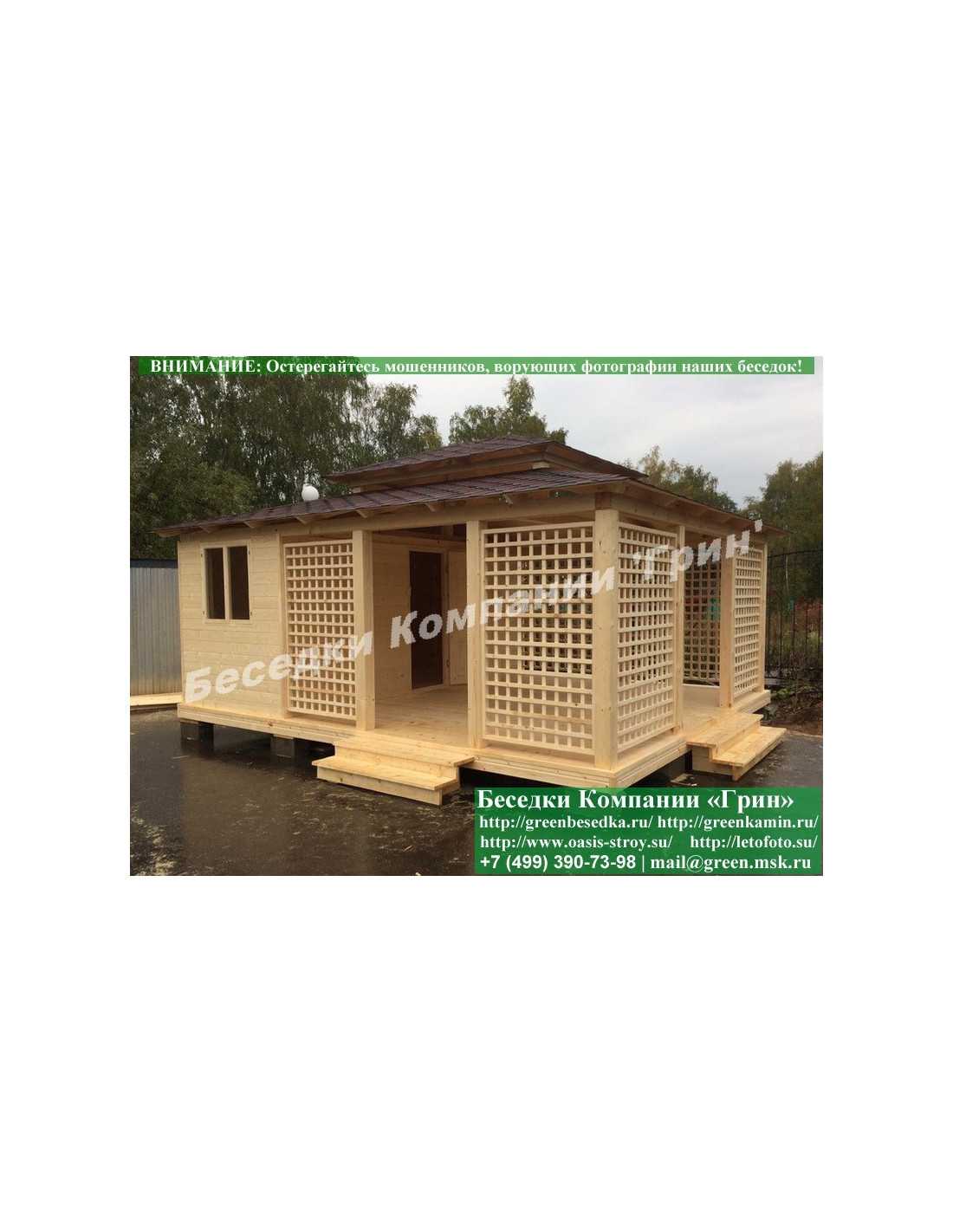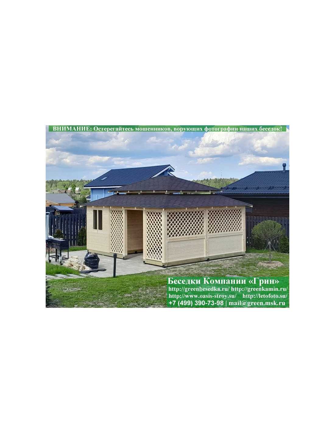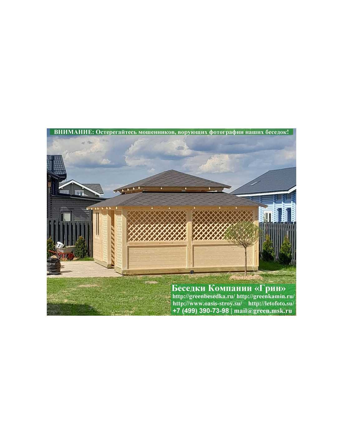 Беседка 5х6 метров. Двухъярусная или одноярусная крыша. 2 входа в беседку и 1 вход в хозблок. Одно не открывающееся окно:537 000 руб.