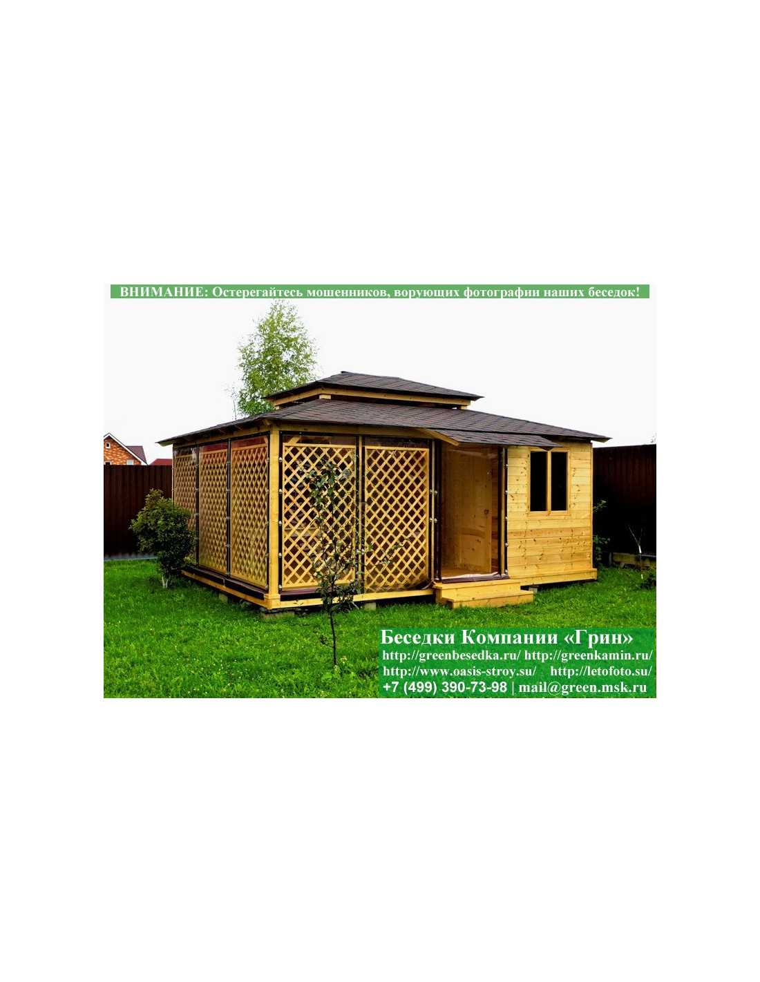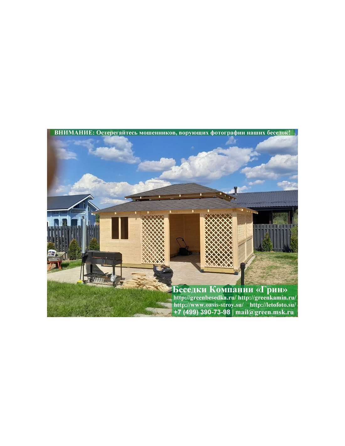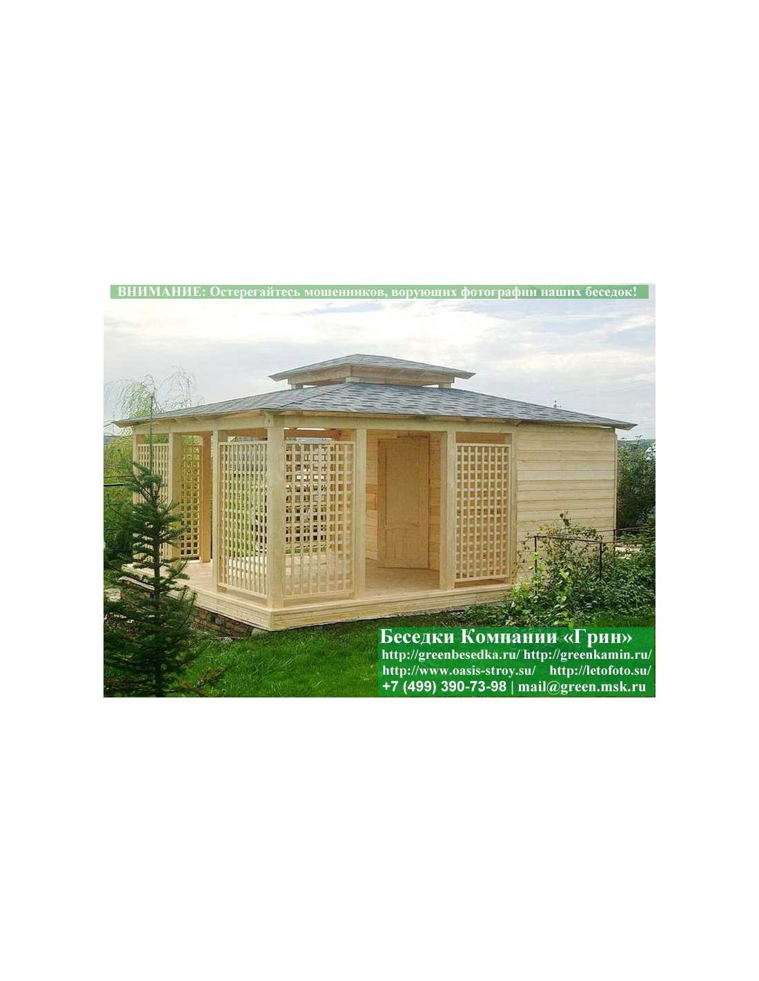 Беседка 5х6 метров. Двухъярусная или одноярусная крыша. 2 входа в беседку и 1 вход в хозблок. Одно не открывающееся окно:537 000 руб.