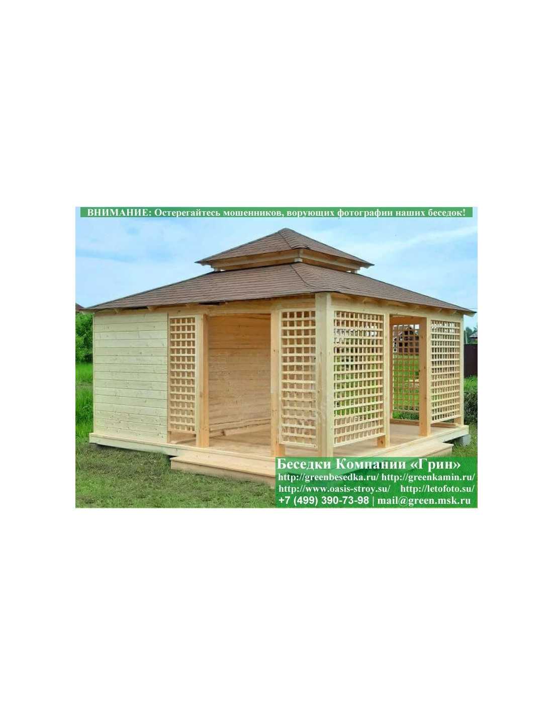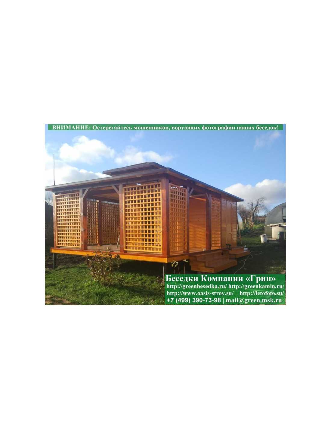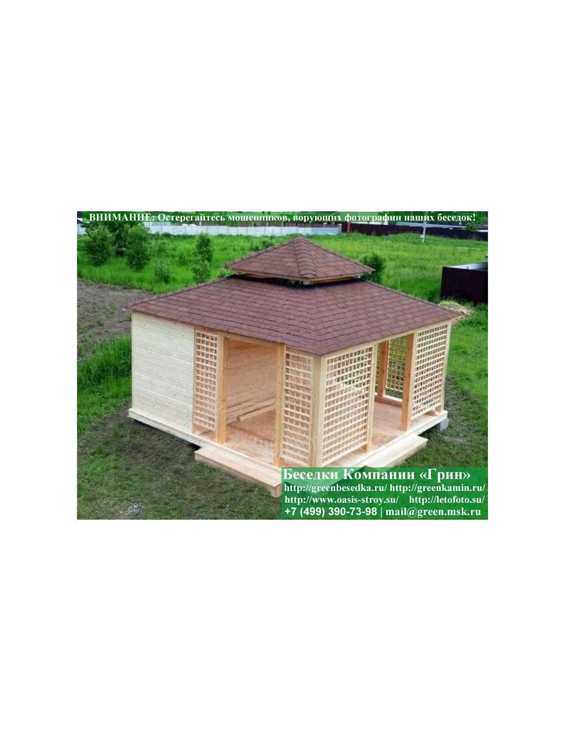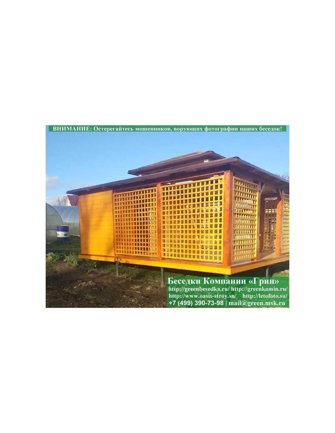 Беседка 5х6 метров. Двухъярусная или одноярусная крыша. 2 входа в беседку и 1 вход в хозблок. Одно не открывающееся окно:537 000 руб.