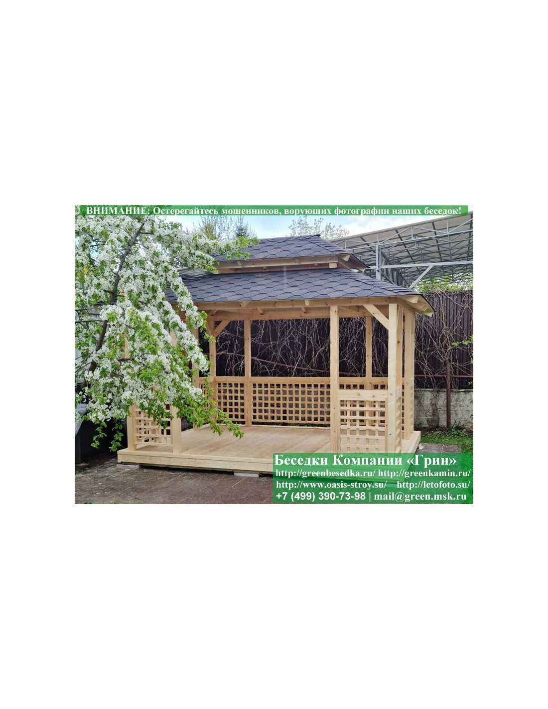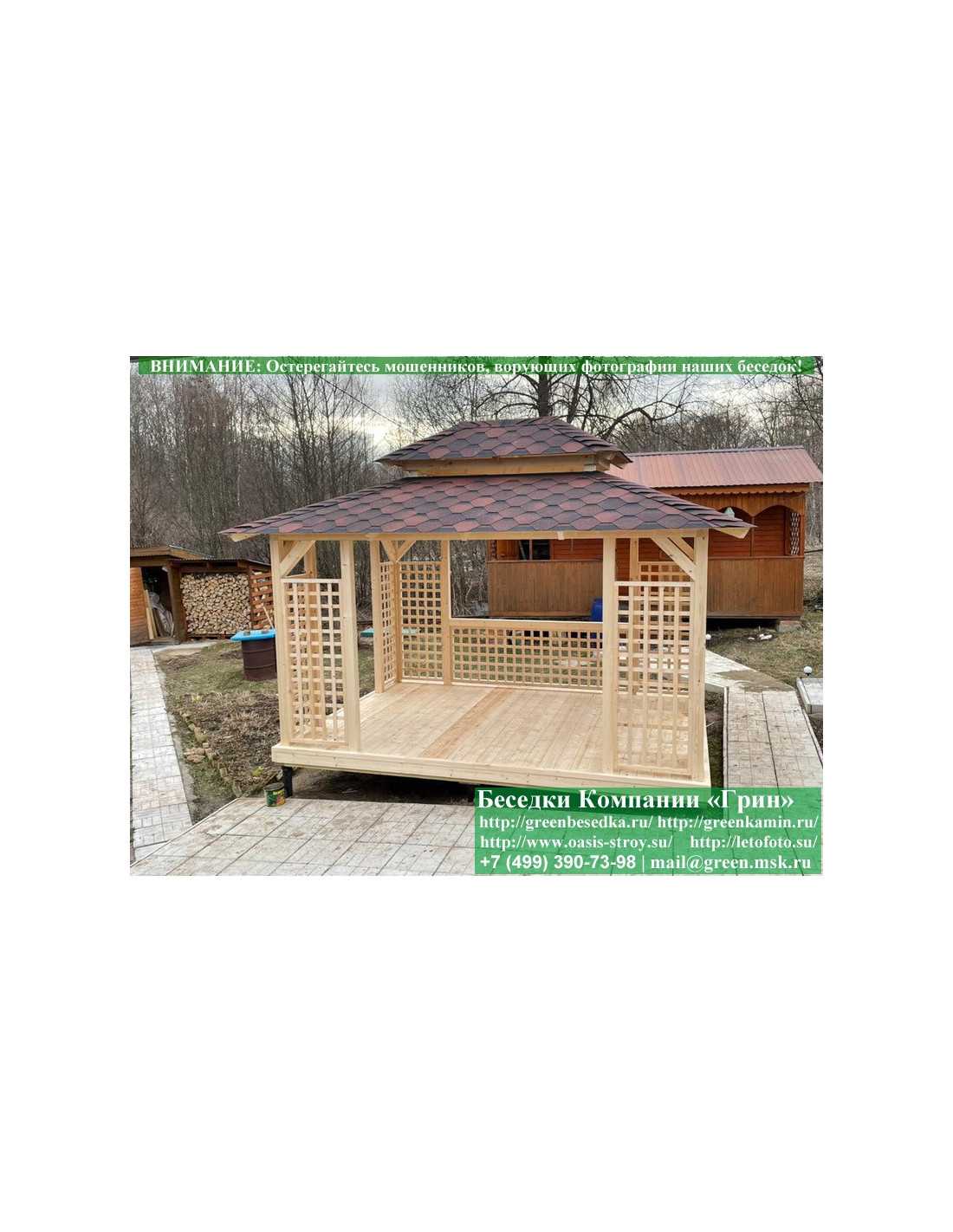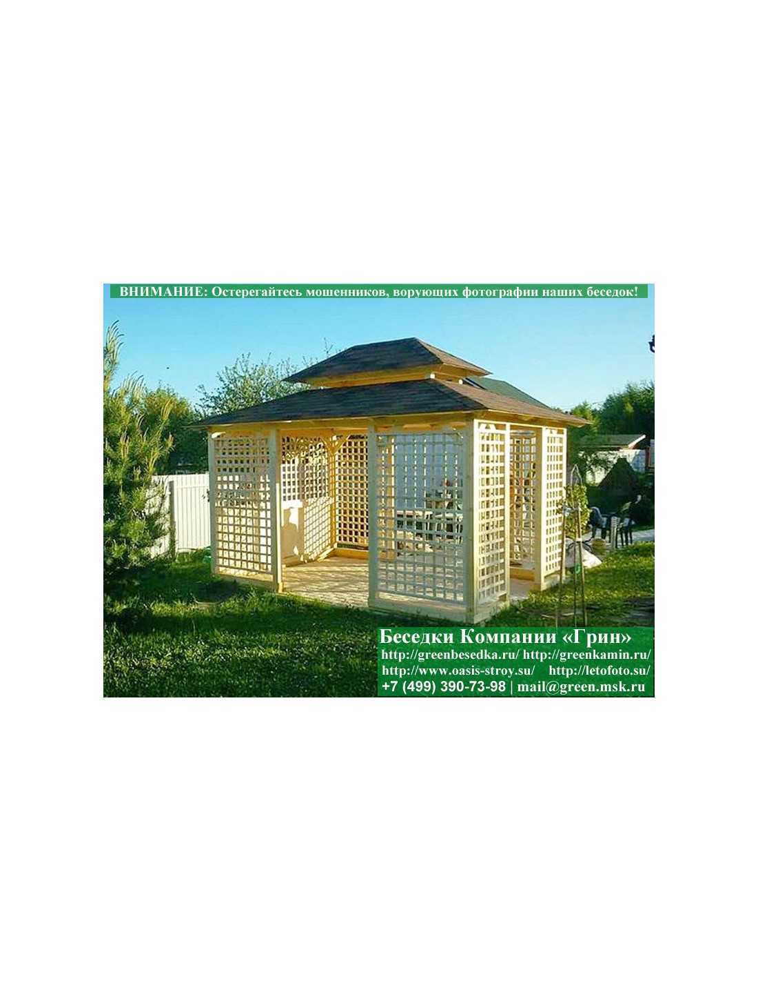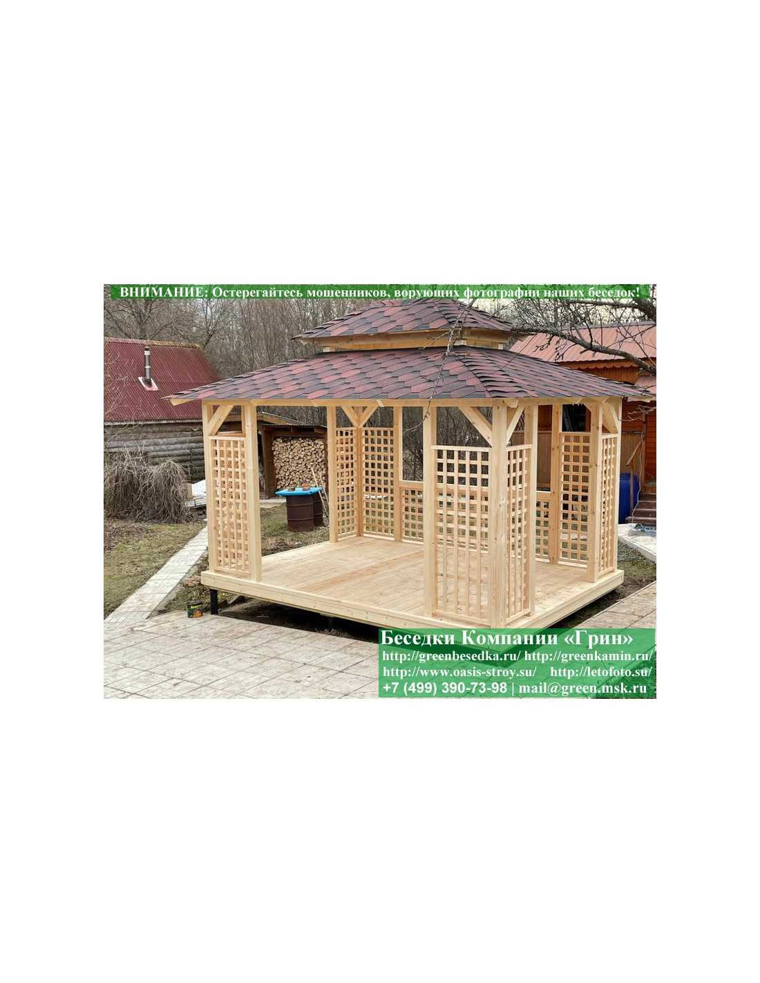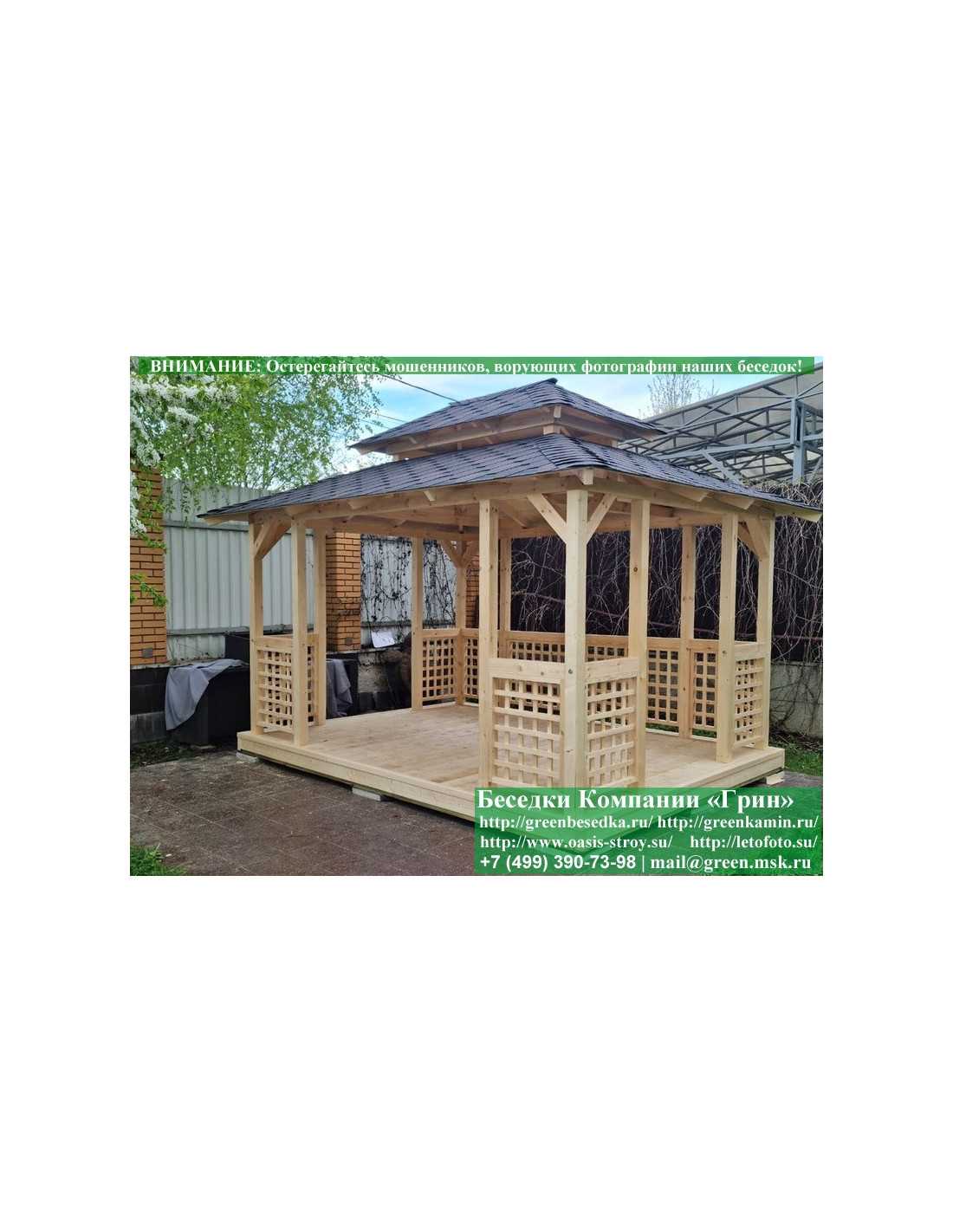 Большая открытая садовая деревянная беседка "Шатер для дачи 4.5х5.5". Цены и фото. Купить недорогую практичную открытую беседку из дерева "Шатер для дачи 4.5х5.5" можно под ключ в Москве и Московской области. Изготовление и строительство беседок "Шатер" по готовым проектам возможно в Калужской, Тверской, Владимирской, Рязанской, Тульской, Ярославской,...
