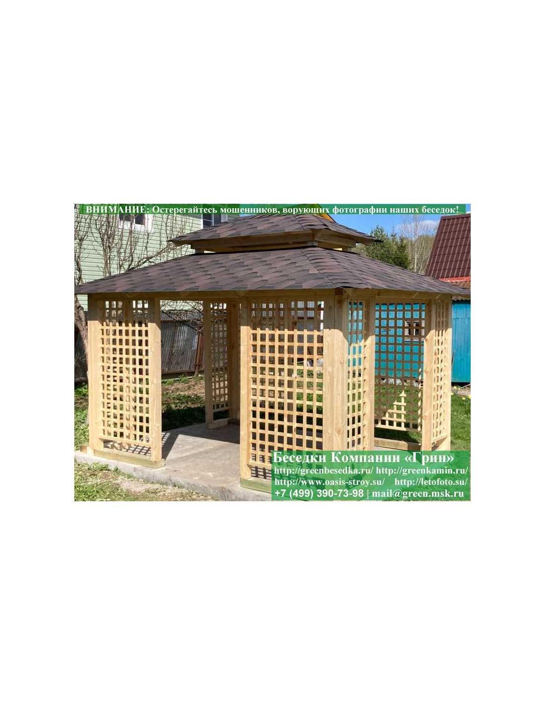 Беседка изготавливается в 2-х вариантах. С полом и без пола;