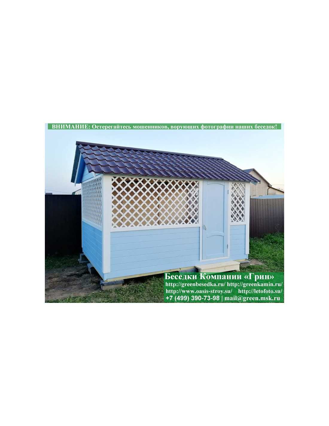 В стандартной поставке в виде кровли на крышу беседок, хозблоков 4х5 метров кладется ондулин (мягкий шифер). Вы можете дополнительно заменить ондулин на более надежную металлочерепицу. Цена: 17000 руб.