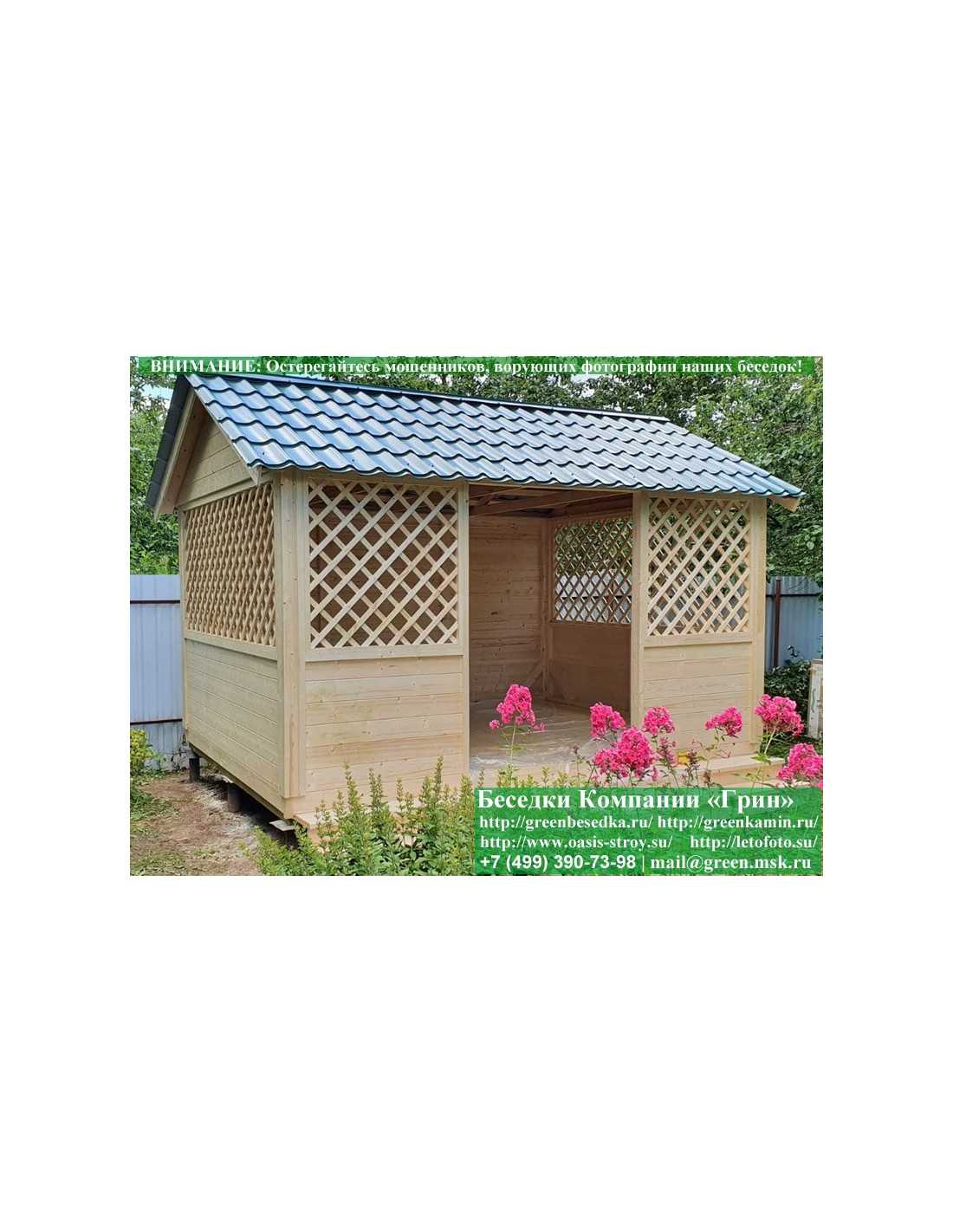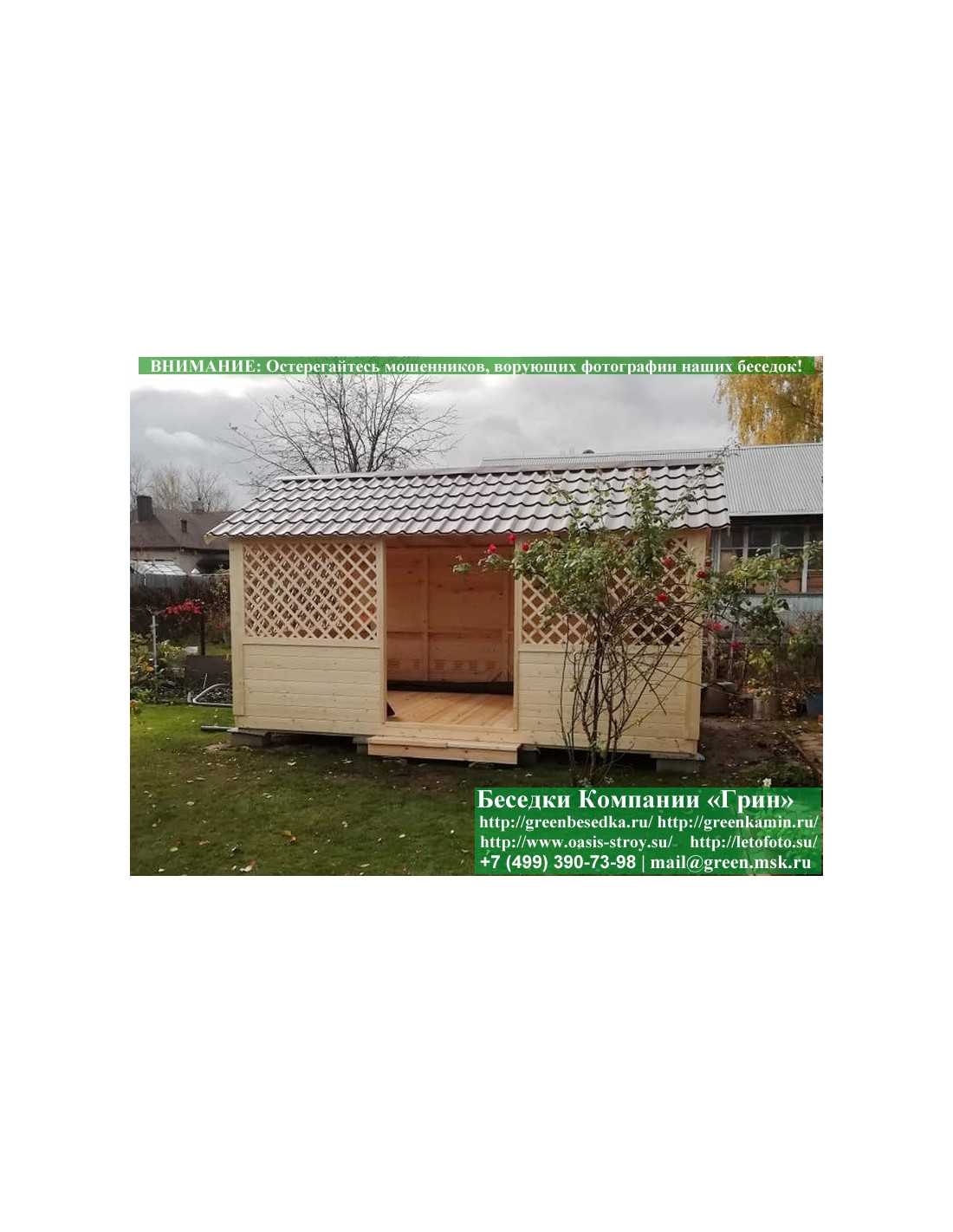 В стандартной поставке в виде кровли на крышу беседок, хозблоков 3х7 метров кладется ондулин (мягкий шифер). Вы можете дополнительно заменить ондулин на более надежную металлочерепицу. Цена: 15000 руб.