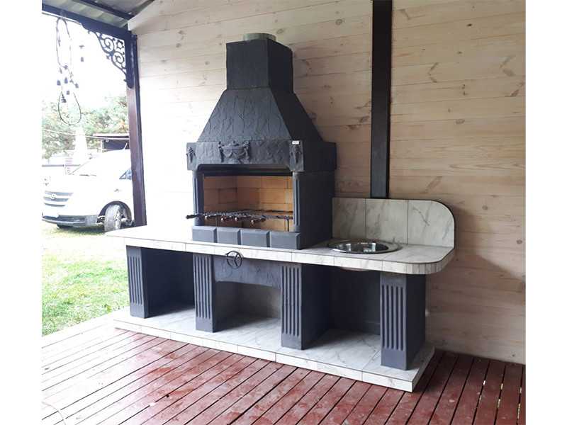 Большой мангал-барбекю для беседки, дачи, летней кухни — это огромный комплекс для настоящих любителей готовить. Конструкция идеально впишется в просторное помещение или на дачу.