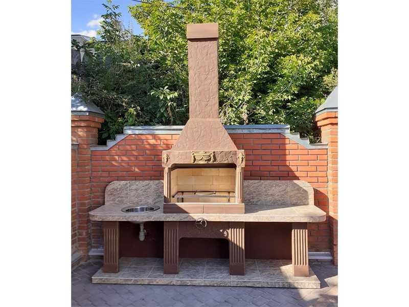 Печь для зоны барбекю на даче этой модели выглядит очень солидно и внушительно. Она не только функциональна, но и становится важной частью интерьера.