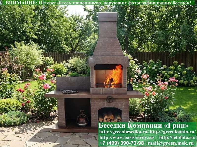 Печь этой модели имеет простой, лаконичный дизайн. Мы выбрали нейтральные цвета: коричневый, серый нескольких оттенков. А это означает, что подолгу искать место для конструкции не придется. Она впишется в любую беседку и на любой участок.