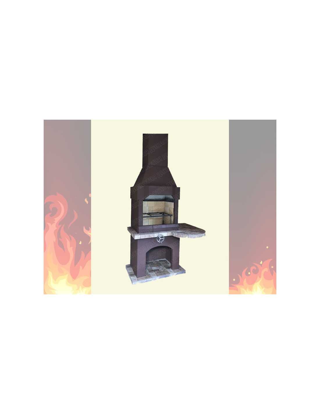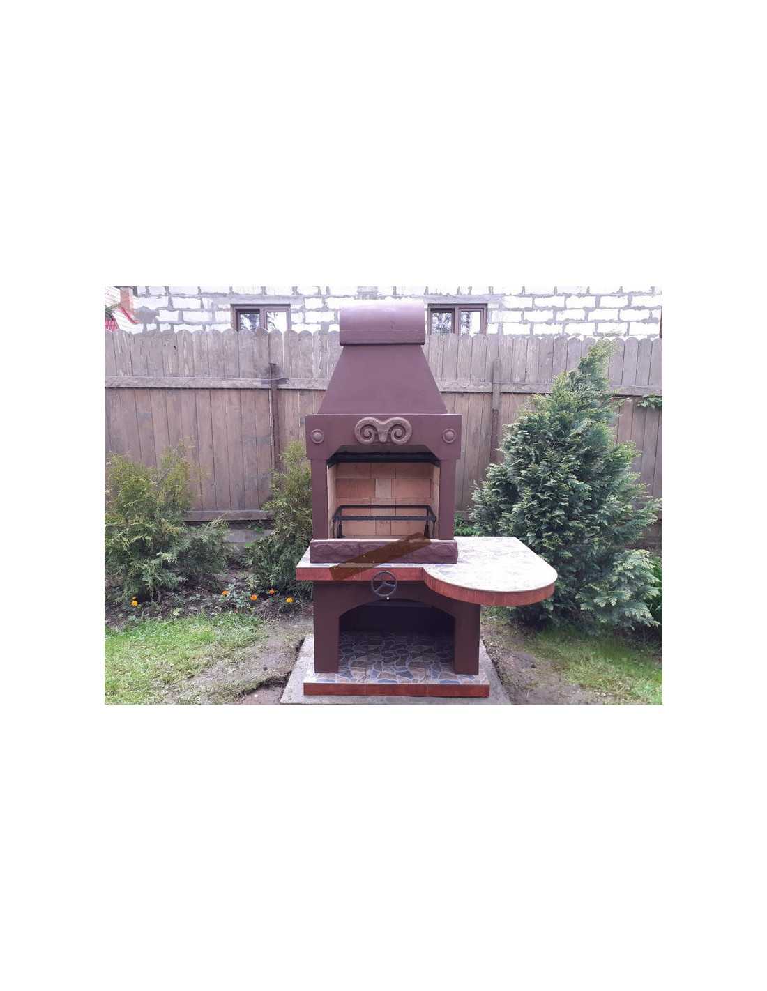 Здесь вы можете купить барбекю с грилем из проверенных годами материалов. Для этой модели выбраны огнеупорный кирпич, армированный бетон и фасадная краска для окрашивания.