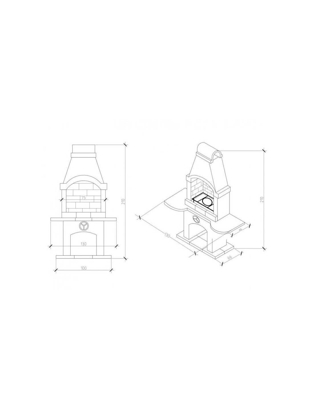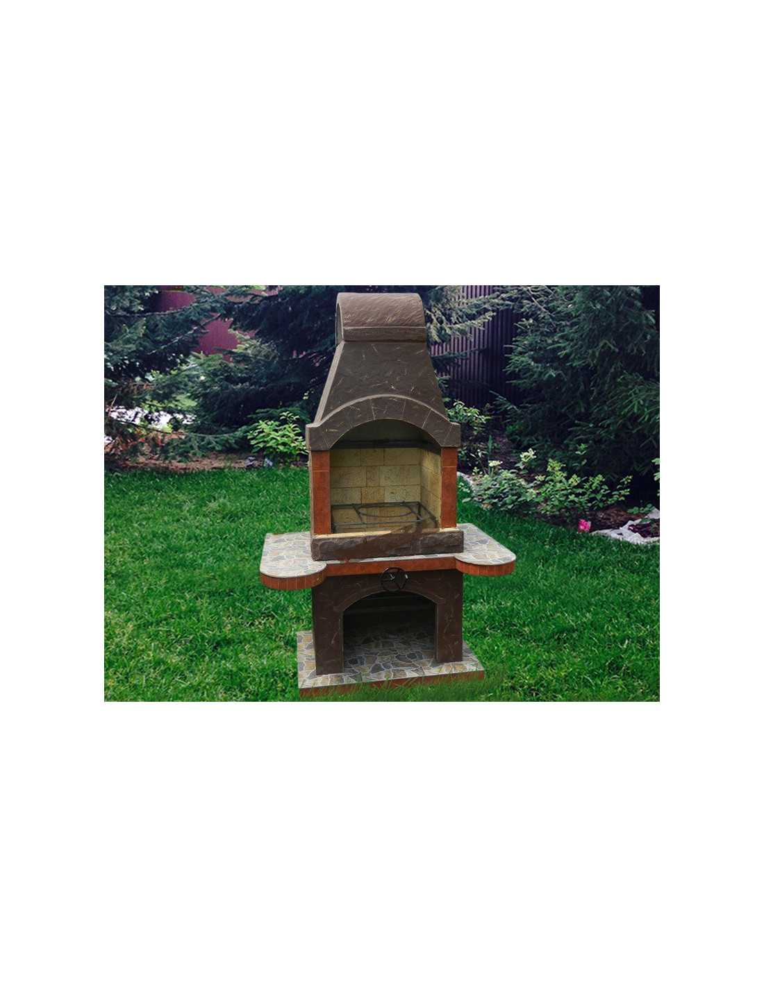 Выполнена из огнеупорного кирпича и армированного бетона. Снизу предусмотрено место для дров.