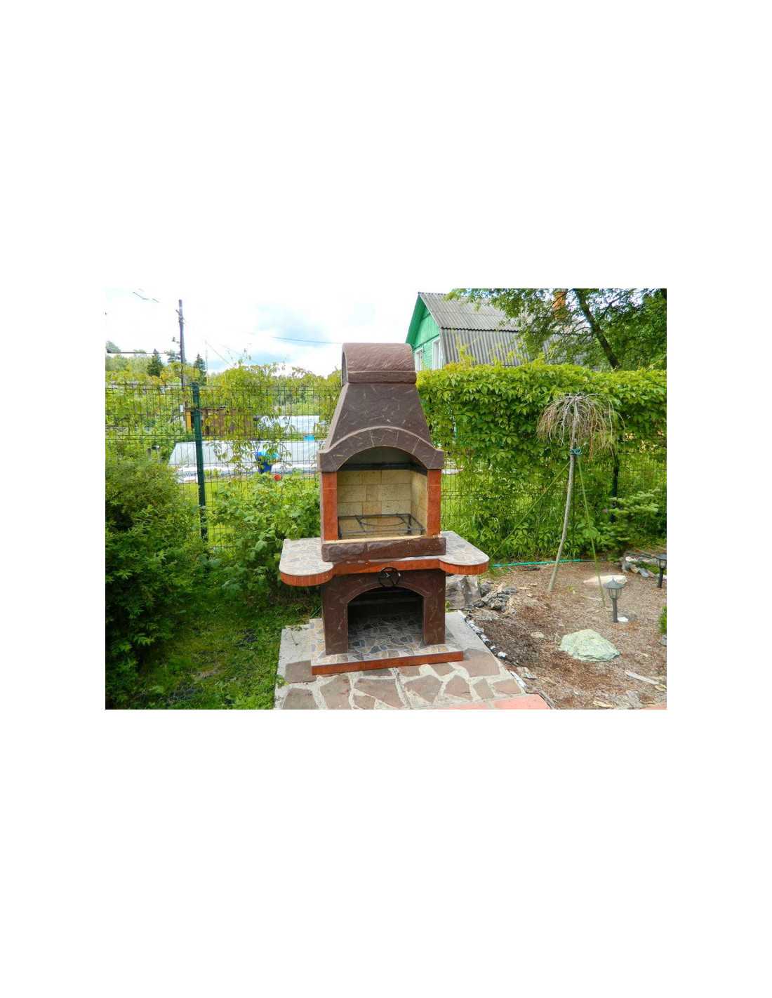 Основу садовой печи составляют огнеупорный кирпич и армированный бетон. То есть она устойчива к огню и механическому воздействию. Модель №3 покрыта фасадной краской, хорошо переносящей воздействие температур и влаги. Но печь все равно важно защищать от регулярных осадков — для этого используют специальные чехлы.