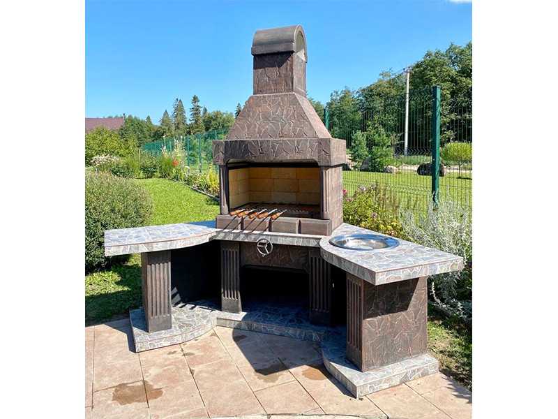 Одну из столешниц в такой печи-барбекю от производителя традиционно отдают под раковину. Если подвести к комплексу воду, получится практически полноценная мини-кухня, на которой удобно готовить даже несколько часов подряд.