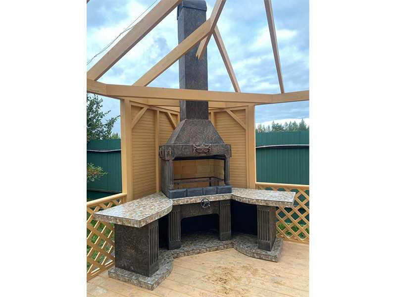 Это одновременно и уличный комплекс барбекю, и конструкция для монтажа в беседках либо других помещениях для отдыха. Если потребуется, модель оснащается удлинителем дымохода, что удобно при высоких потолках.