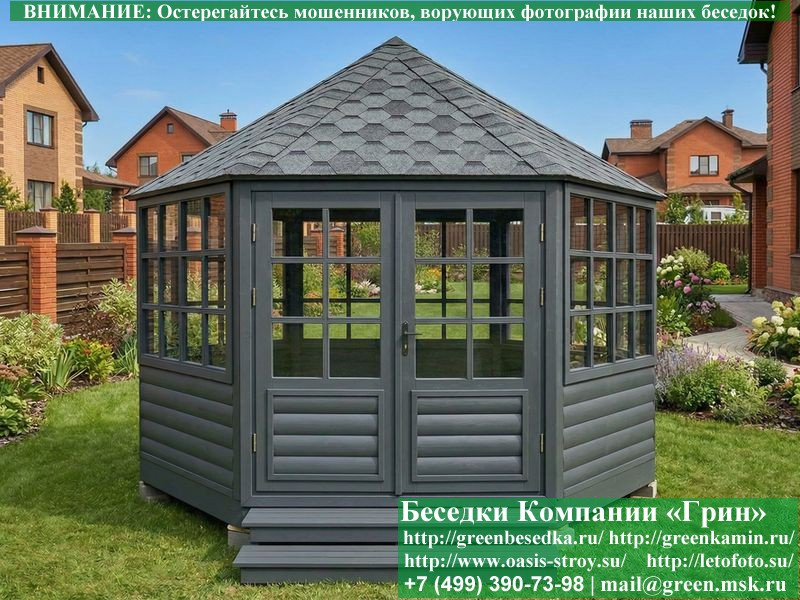 Застекленная Шестиугольная Беседка Ø4. Вариант № 1